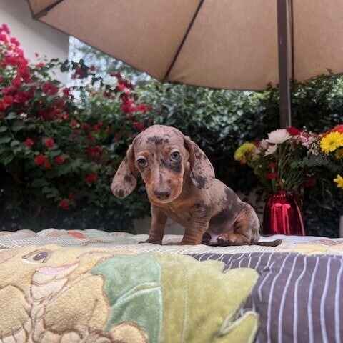 The famously long, low silhouette, ever-alert expression, and bold, vivacious personality of the Dachshund Miniature have made them a superstar. Dachshunds can be standard-sized (usually 16 to 32 pounds) or miniature (11 pounds or under) Win Dachshund are miniature. Win Dachshund have three coat types smooth, wirehaired, or longhaired. The 30 different colors and patterns from fawn and cream, black and tan, blue and cream. Win Dachshunds are game for anything Smart and vigilant, with a big-dog bark, they make fine watchdogs. They are brave to the point of rashness, but their endearing nature and unique look has won millions of hearts the world over.